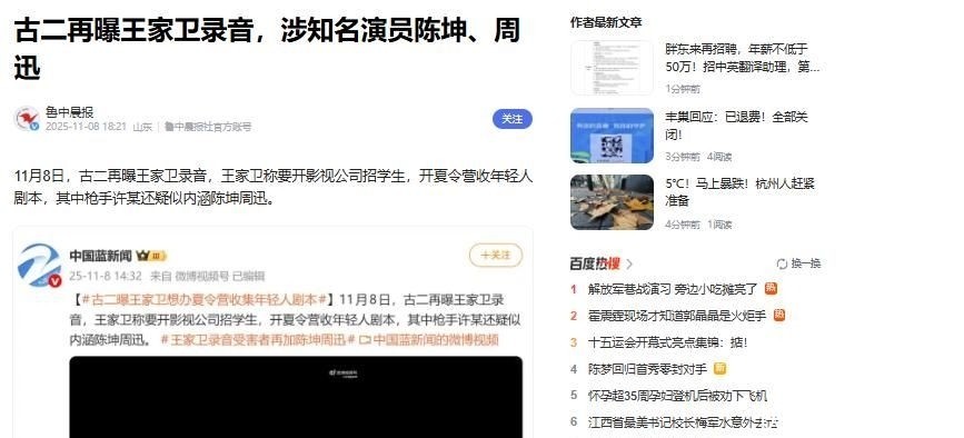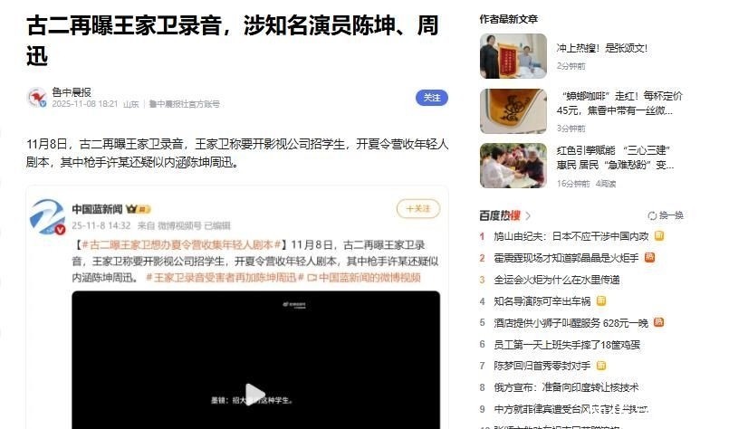 146:古二再曝王家卫录音,涉知名演员陈坤、周迅.鲁中晨报.2025-11-08