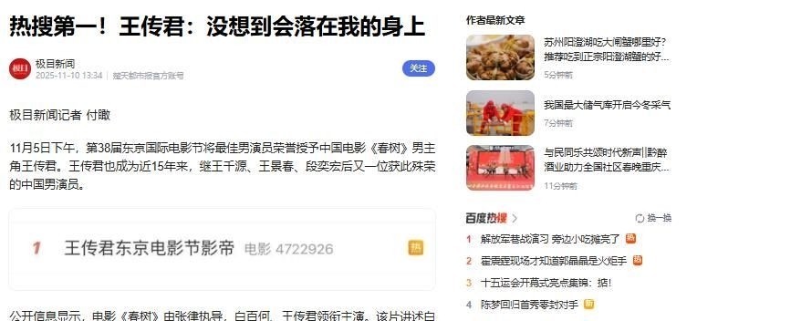 148:热搜第一!王传君:没想到会落在我的身上.极目新闻.2025-11-10