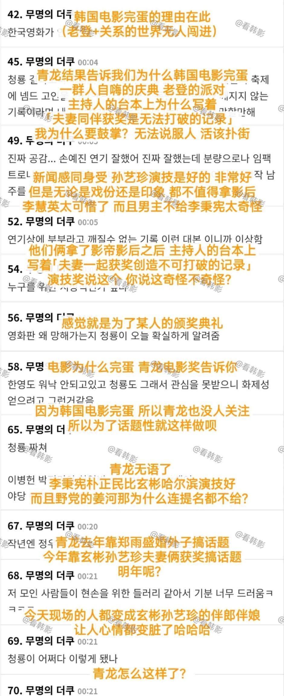只不过得奖之后,在韩网评论似乎并不正面。 先有韩媒以画面颜值是漂亮的,话题性是最棒的,却是难以说服人的结果来总结这次青龙奖。