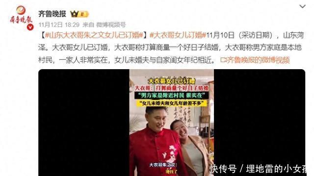 消息是从大衣哥老家传出来的。面对上门采访的当地媒体,大衣哥笑得合不拢嘴,亲口证实了这个好消息。他说接下来两家人要坐下来好好商量,选个黄道吉日给孩子们把婚事办了。