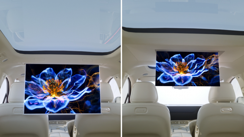 后排娱乐场景中,斯蒙奇吸顶屏幕运动系统给出了针对性解决方案,翻转屏与幕布版本适配不同车型需求。翻转屏运行时静音流畅,即便在颠簸路段,阻尼轴的缓冲让屏幕稳定固定,不影响观影体验;幕布版本智能控制技术实现柔性启停,升降过程平顺无顿挫,为后排营造沉浸式视听环境。