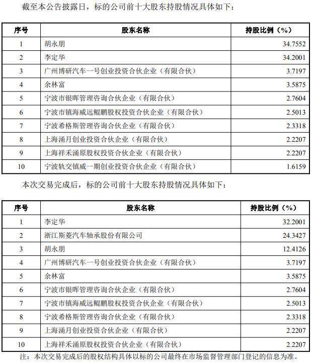 11月18日,斯菱股份(301550)公告,为满足公司战略发展需要,同时进一步拓展精密轴承业务正规配资平台推荐,公司于2025年11月18日与宁波银球科技股份有限公司(以下简称“标的公司”或“银球科技”)股东胡永朋、李定华签署了《浙江斯菱汽车轴承股份有限公司与胡永朋、李定华关于宁波银球科技股份有限公司之股份转让协议》,公司以自有资金或自筹资金392,225,364.00元购买标的公司24.3427%股权(对应23,076,833股股份),其中分别向胡永朋、李定华购买其持有的标的公司22.3427%股权(即21,180,833股股份)和2.0000%股权(即1,896,000股股份)。