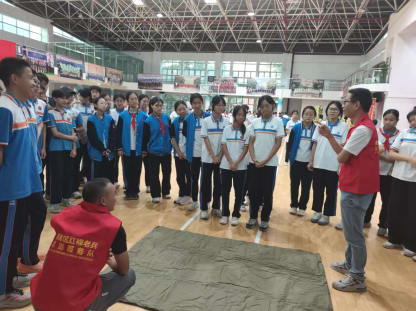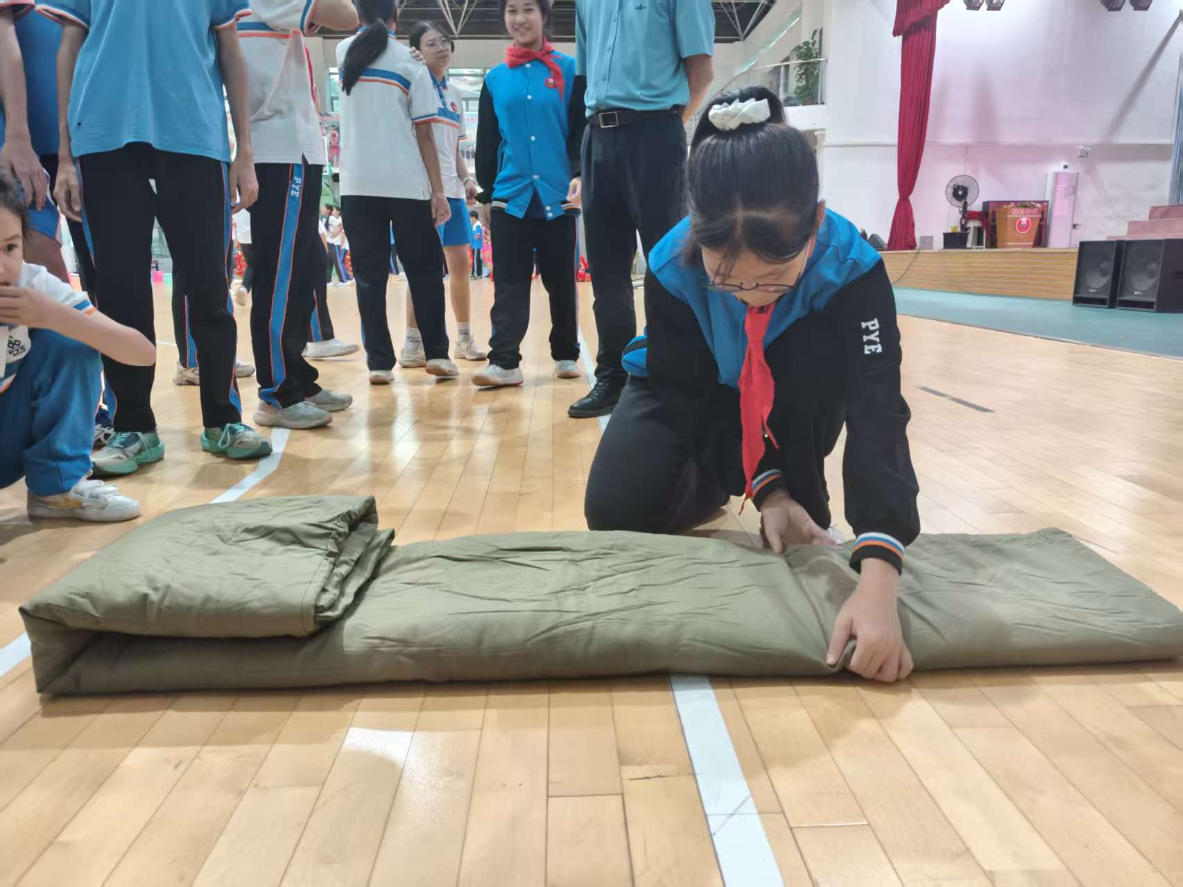 现场还设置了“舞狮体验区”和“军旅体验区”,让同学们从观看者变为参与者,亲身感受传统文化的魅力与军人的纪律与力量。在舞狮体验区,在龙狮队员的指导下,同学们兴奋地学习穿戴迷你狮头,练习基础的摆头、跳跃动作。小小的狮头在手中虽显稚嫩,但一招一式间,已初显传统文化的韵味与风采。在军旅体验区,“红棉老兵”志愿者亲自上阵,手把手教学“叠豆腐块”被子,一方方棱角分明的军被让同学们惊叹不已;军体拳教学更是虎虎生风,不仅锻炼了体魄,更磨砺了意志,让人体会到了纪律与团队的力量。