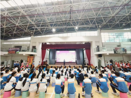 随后,现场播放了第十五届全运会宣传片。壮观的场馆、运动的激情与广州的城市魅力交相辉映,让同学们对这场在家门口举办的体育盛会充满期待。在有奖问答环节,大家踊跃举手,争相回答关于会徽、吉祥物、比赛项目等全运知识,在欢快氛围中加深了对全运会的了解,热爱体育、支持全运的种子在心中悄然生根。