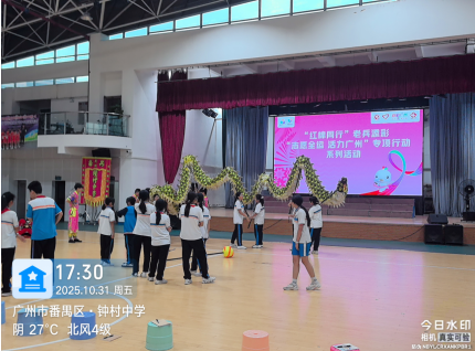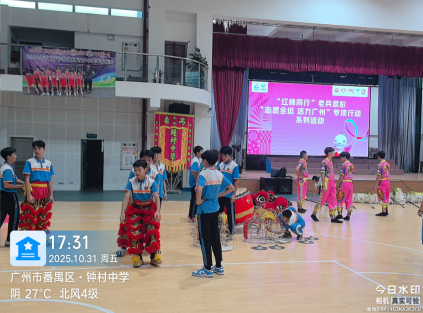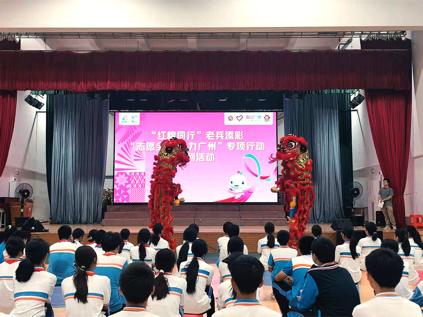 为迎接第十五届全国运动会,弘扬中华优秀传统文化与爱国主义精神,近日,钟村四村龙狮会与钟村街红棉老兵志愿服务队在钟村中学联合开展“武韵润校园,红棉助成长——‘红棉同行’老兵添彩‘志愿全运 活力广州’”专项志愿活动。活动将非物质文化遗产、全运知识与国防教育深度融合,为校园注入蓬勃的朝气与活力。